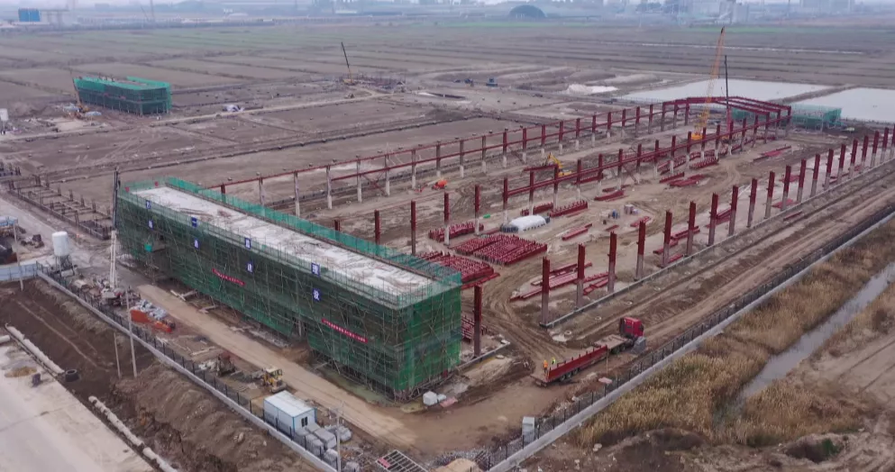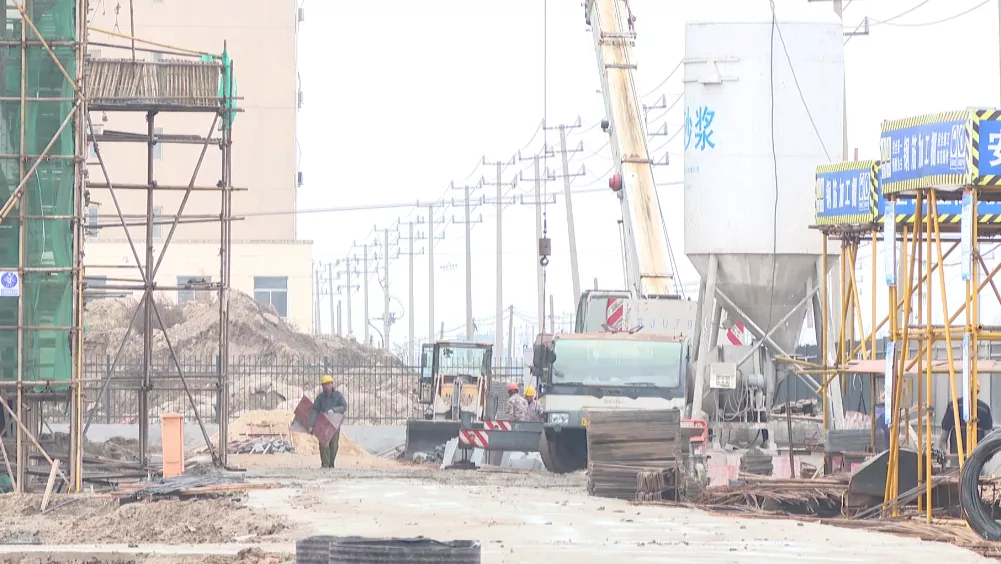 走進大豐港區昆侖綠建項目建設現場,工人們正在緊張作業,鋼管架密如織網、轟鳴聲震耳欲聾、運輸車來回穿梭,現代化的廠房即將拔地而起。