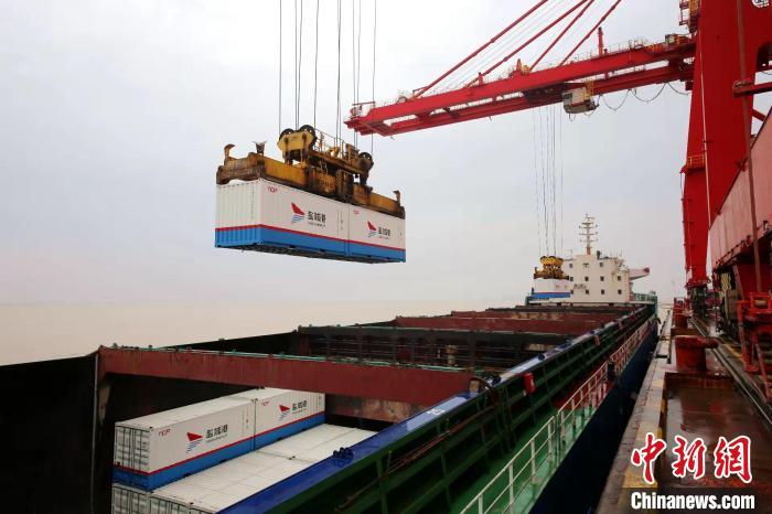 裝載農(nóng)副產(chǎn)品的貨輪駛向上海?!←}城港集團(tuán)供圖