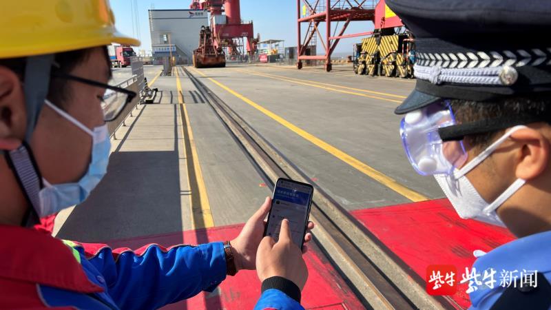 圖為碼頭工人有序使用”電子哨兵“