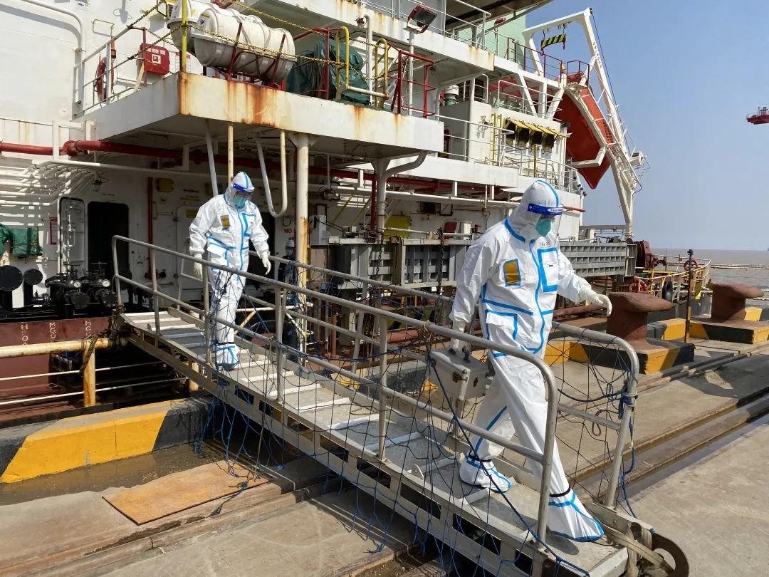 鹽城海岸線長達(dá)582公里,占江蘇省海岸線總長度比重高達(dá)56%,鹽城港共有“一港四區(qū)”,即大豐港區(qū)、濱海港區(qū)、射陽港區(qū)和響水港區(qū),點(diǎn)多面廣。有一群人默默在這些口岸間來回穿梭,對入境船舶實(shí)施登臨檢疫,筑牢口岸檢疫防線,他們就是鹽城海關(guān)疫情防控水運(yùn)專班的成員。