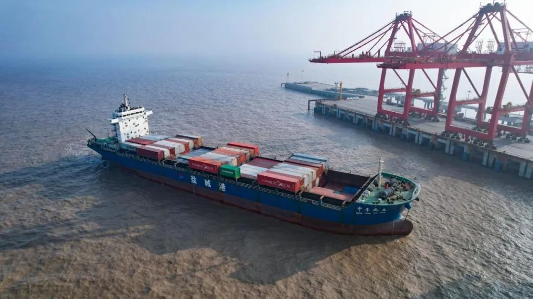1月11日,集團(tuán)2023年首條新增航線,鹽城港至太倉(cāng)港集裝箱班輪(沿海)航線正式開通。