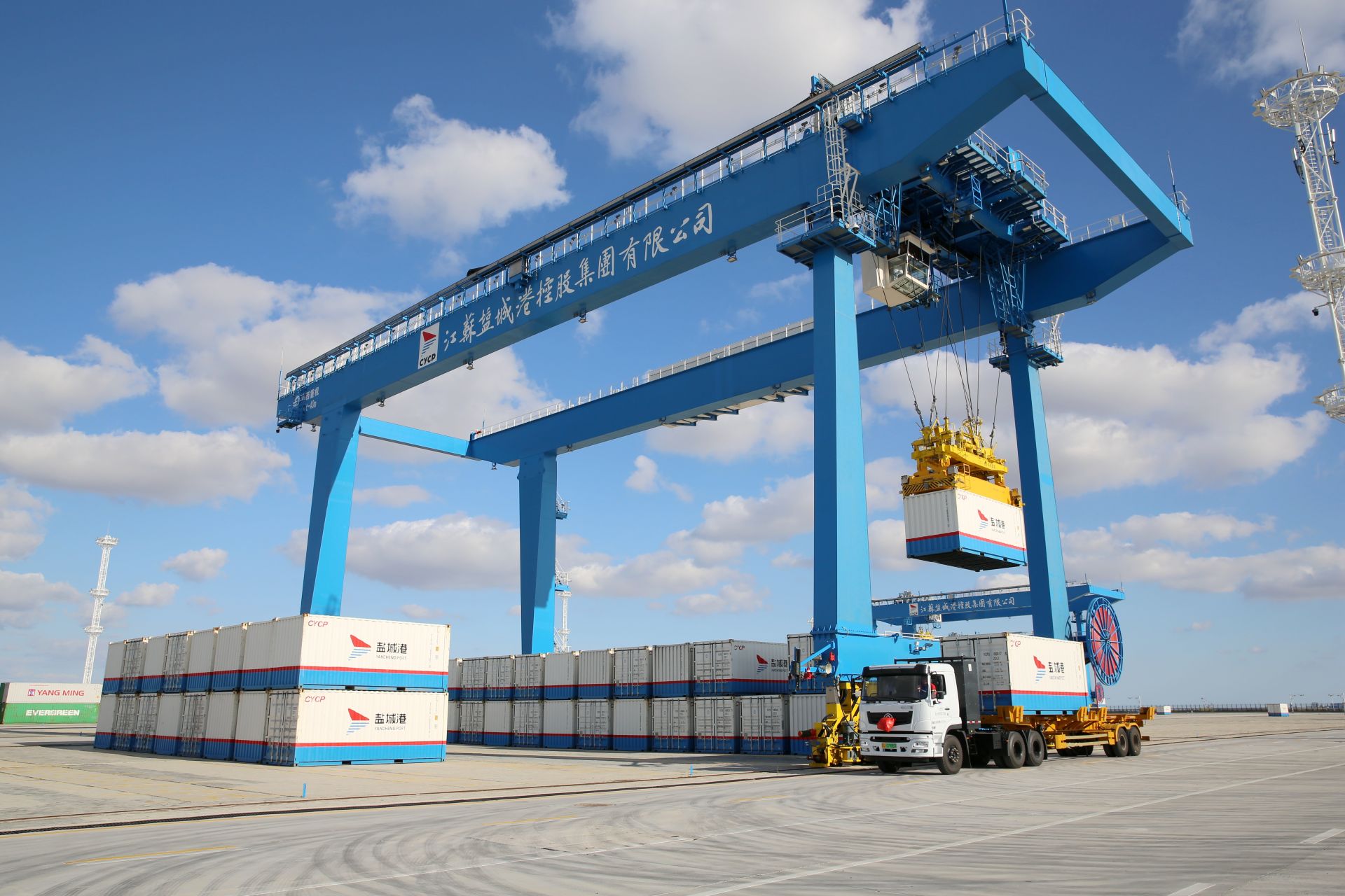 鹽城港自動化集裝箱堆場項目由江蘇鹽城港智慧港口有限公司投資建設(shè),總投資4.5億元,綜合運用5G、自動化控制、北斗定位、數(shù)字孿生、智能一體化TOS(集裝箱操作系統(tǒng))等先進(jìn)技術(shù),進(jìn)行數(shù)字化、智能化、多維度融合,實現(xiàn)設(shè)備遠(yuǎn)程控制、全過程設(shè)備調(diào)度一體化、生產(chǎn)作業(yè)現(xiàn)場無人化,年周轉(zhuǎn)集裝箱達(dá)100萬標(biāo)箱。滿負(fù)荷生產(chǎn)運營后,預(yù)計可實現(xiàn)年營業(yè)收入1.4億元。