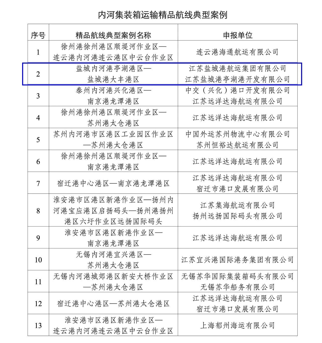 內(nèi)河集裝箱綠色示范航線(大豐港區(qū)—亭湖港區(qū))