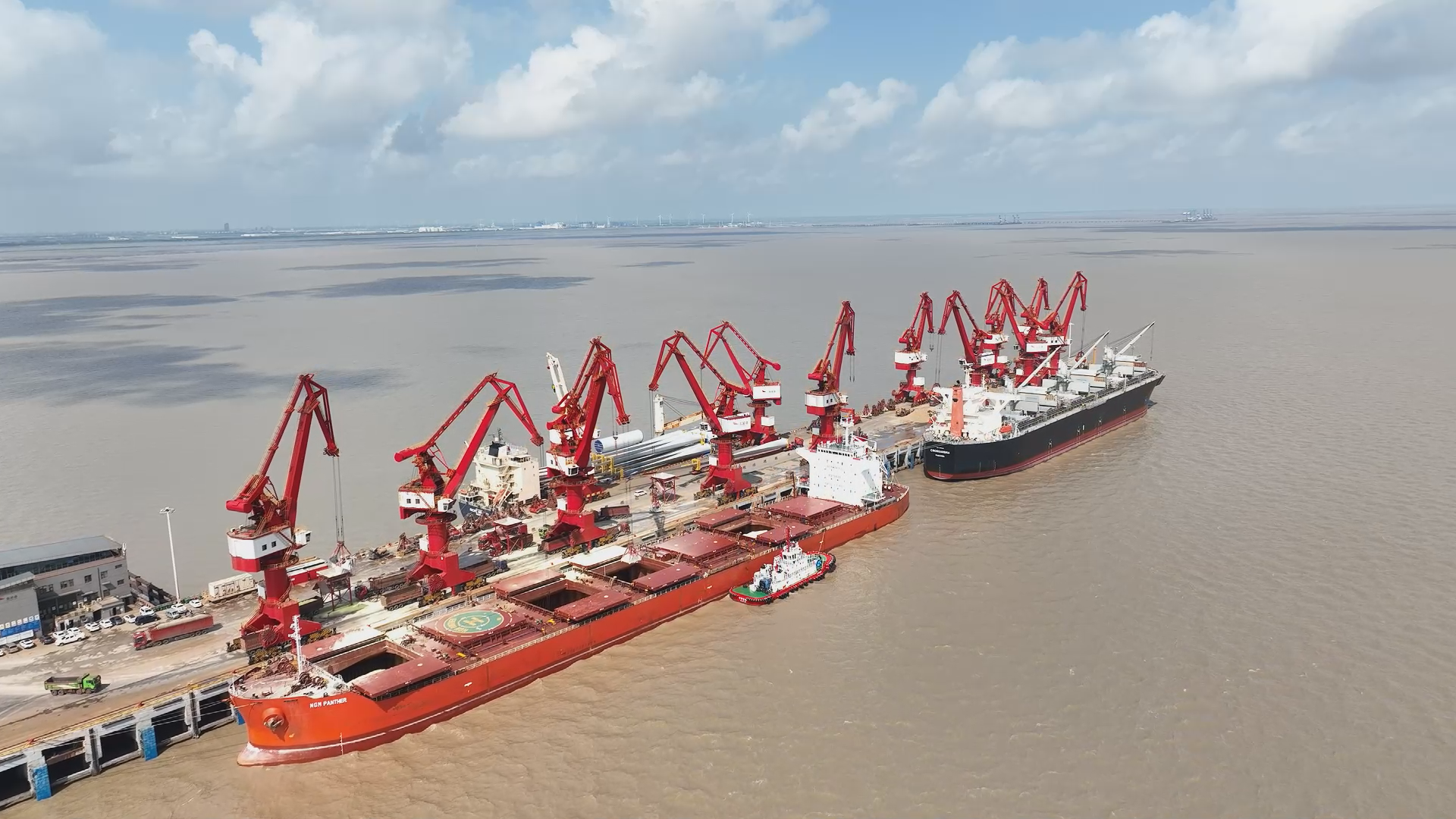在鹽城港大豐港區(qū)通用碼頭上,來(lái)自莫桑比亞的長(zhǎng)航潤(rùn)海號(hào)貨輪,滿載6萬(wàn)噸鈦礦停靠2號(hào)泊位正在卸貨,四臺(tái)門(mén)座式起重機(jī)協(xié)同發(fā)力,預(yù)計(jì)將在3天內(nèi)卸載完成,滿足內(nèi)地企業(yè)生產(chǎn)需要。在1號(hào)泊位上,來(lái)自越南的貨輪滿載木片,也在緊鑼密鼓地卸載,碼頭上運(yùn)輸車輛川流不息。據(jù)了解,為保證在規(guī)定的時(shí)間內(nèi)完成任務(wù),大豐港區(qū)工作人員加班加點(diǎn)組織裝卸。