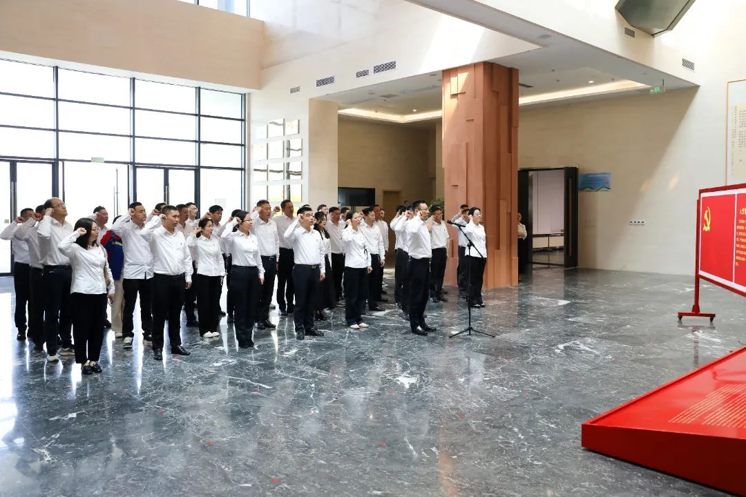 “我志愿加入中國共產黨,擁護黨的綱領...” 在莊嚴的黨旗下,全體黨員重溫入黨誓詞,鏗鏘誓言在紀念館內久久回蕩。這誓言不僅是對入黨初心的回溯,更是對當下及未來為黨和人民事業拼搏奮斗的莊重承諾。
