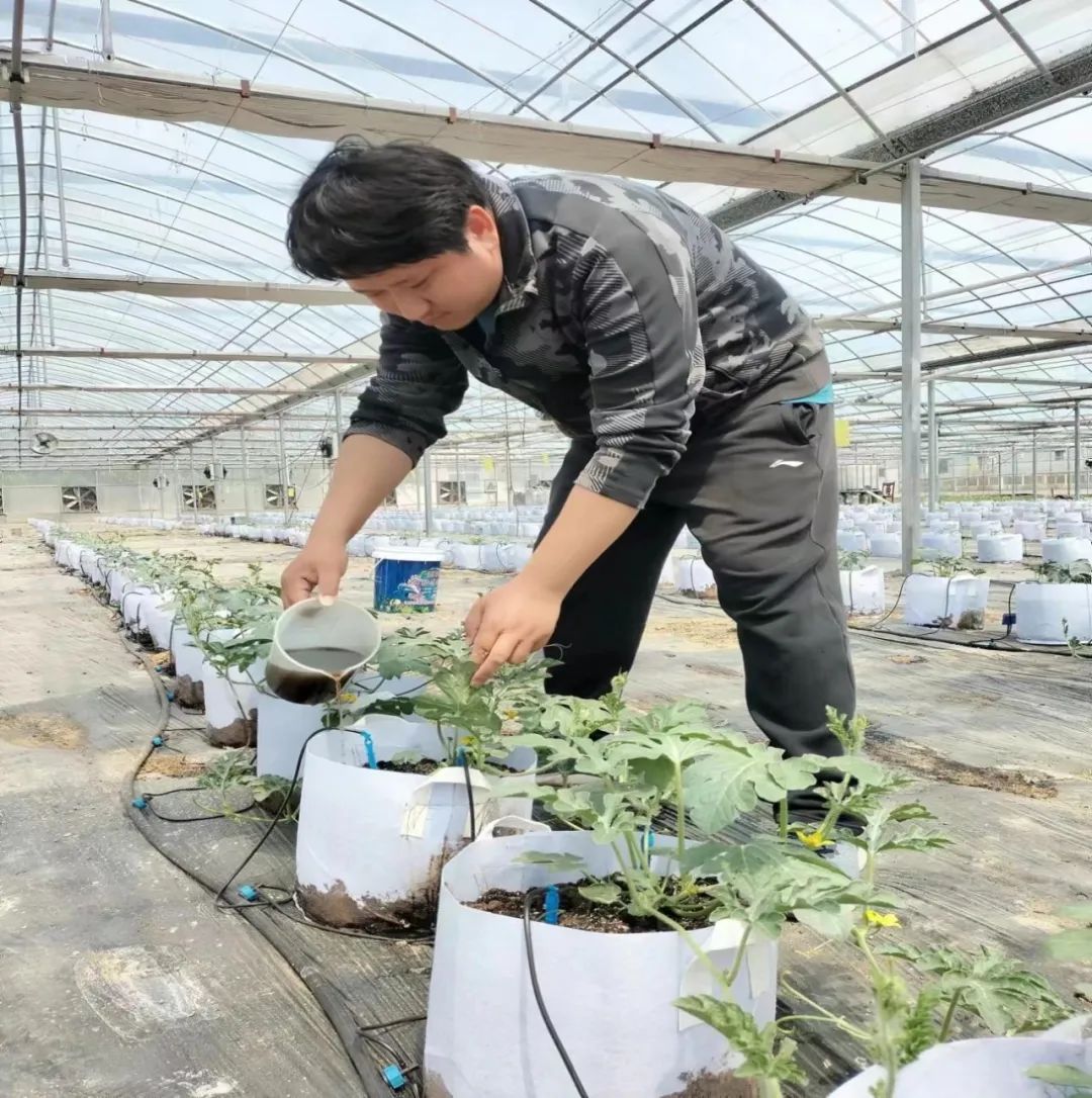 在探索西瓜重茬防治方法過程中,突破傳統思維模式,采用無土栽培種植方式,結合水肥一體化滴灌系統,實現西瓜健康茁壯生長。通過更換栽培基質,從源頭控制,徹底解決病原菌因環境篩選大量繁殖問題,調和了西瓜年年輪換土地導致適宜種植西瓜的土地不足而限制西瓜產業發展的矛盾。