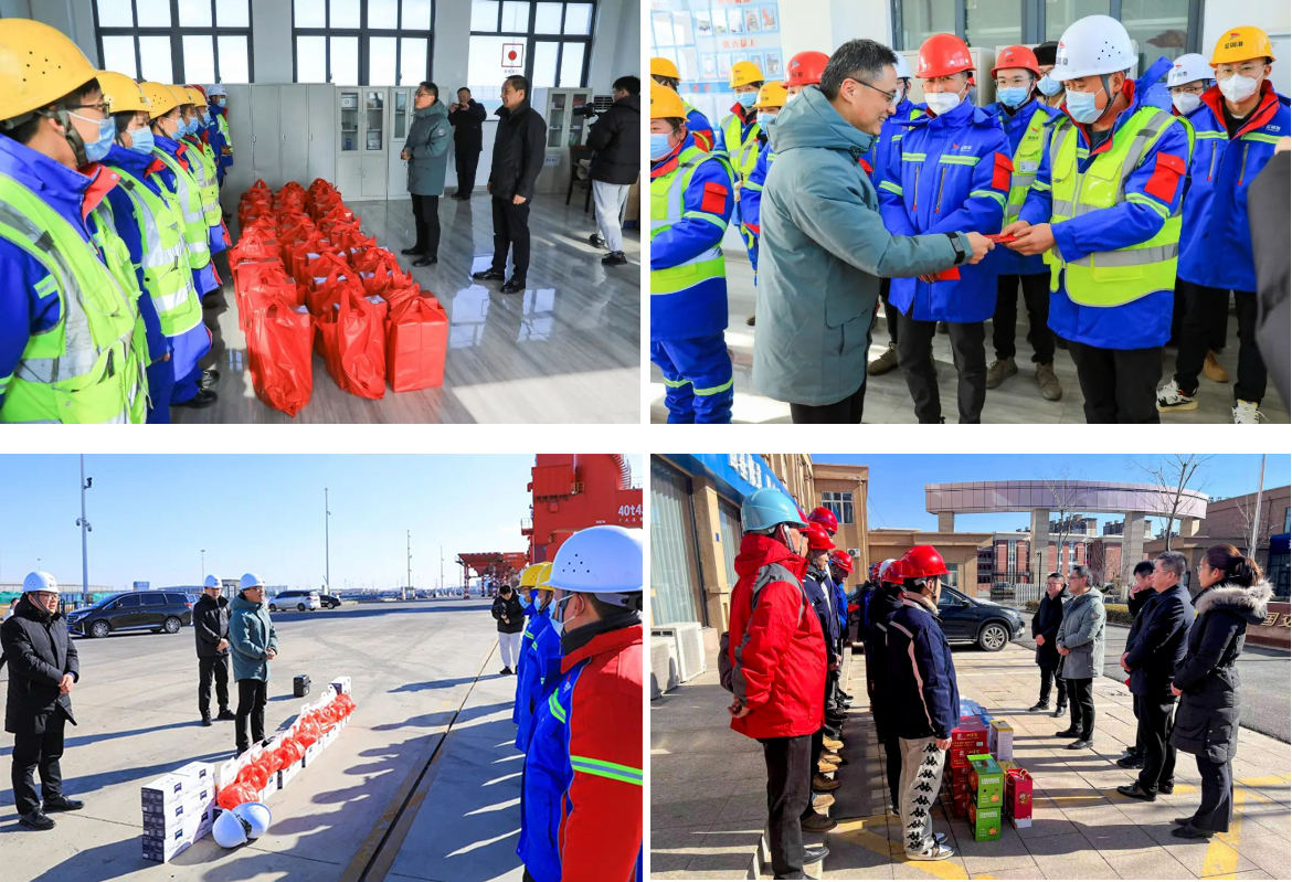 玉兔迎新春,溫暖到一線。受集團黨委、董事會委托,1月23日至24日,集團黨委副書記、董事、總經(jīng)理陸帥率隊前往鹽城港陸港集團、射陽港區(qū)、濱海港區(qū)和響水港區(qū),看望慰問春節(jié)期間堅守在一線的干部職工。集團黨委委員、副總經(jīng)理丁安廣、梁洪兵等參加。