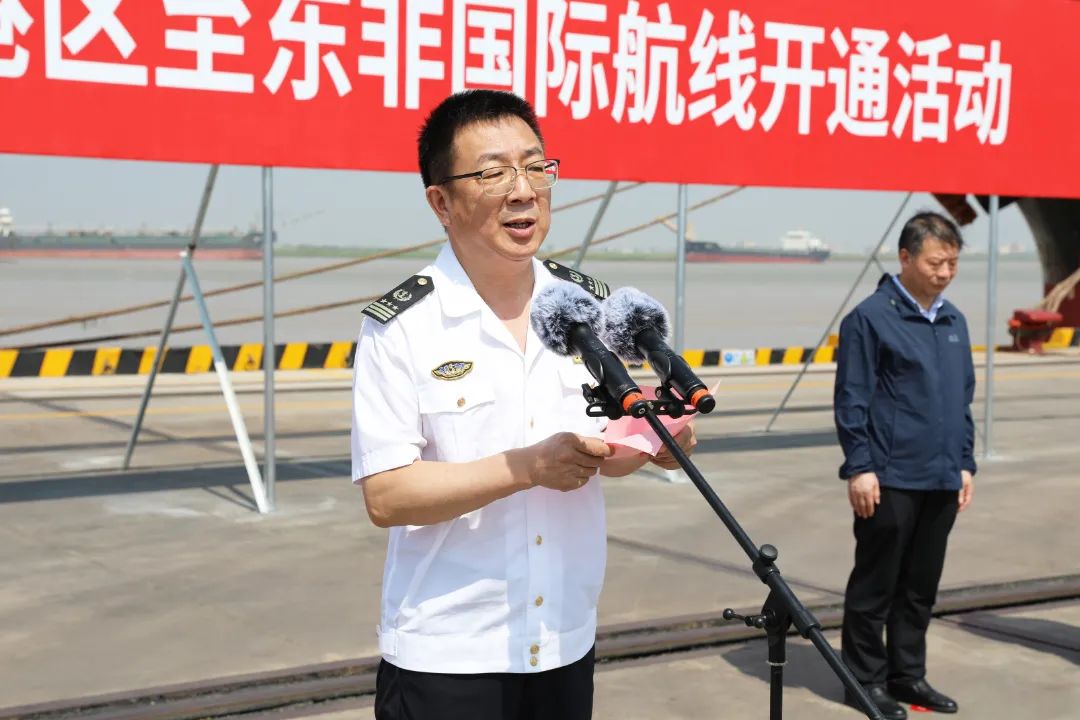 在全市上下深入學習貫徹市委八屆七次全會精神,勇當全省發(fā)展新質(zhì)生產(chǎn)力的“碳路先鋒”,全面推進“水運江蘇”建設和海洋經(jīng)濟高質(zhì)量發(fā)展的重要時刻,6月13日上午,灌河口5萬噸級航道通航暨鹽城港響水港區(qū)至東非國際航線開通活動成功舉行,標志著鹽城沿海“一港四區(qū)”萬噸級以上航道實現(xiàn)通航全覆蓋,對鹽城港加快構建“河海聯(lián)運”新格局,推動沿海地區(qū)高質(zhì)量發(fā)展,打造“藍色經(jīng)濟”增長極具有重要意義。市委常委、副市長王連春宣布通航。鹽城港集團黨委書記、董事長周正雄介紹相關情況。連云港海事局副局長丁星,響水縣委書記郭超出席活動并致辭。市政府副秘書長陶曉林主持。