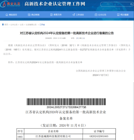 12月3日,鹽城港科技集團成功通過“高新技術(shù)企業(yè)”認(rèn)定,提前一年完成國家高新技術(shù)企業(yè)認(rèn)定的既定目標(biāo),標(biāo)志著鹽城港集團科技創(chuàng)新工作實現(xiàn)重大突破,邁入轉(zhuǎn)型升級新階段。