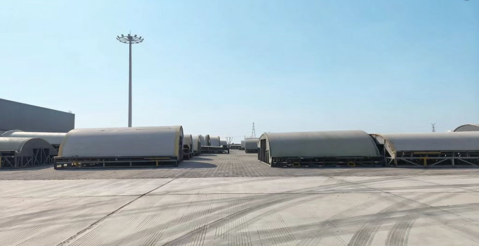據(jù)悉,此次堆存的36件“陽模”新貨種均系風(fēng)電葉片模具的“家庭成員”,作為國家一類開放口岸,濱海港區(qū)物流公司創(chuàng)新推出“物流+轉(zhuǎn)運(yùn)+堆存”一體化服務(wù)模式。針對“陽模”體積大、精度要求高等特性,公司專門制定專項(xiàng)作業(yè)方案,劃定2600平方米專屬堆存空間;為便于吊裝與轉(zhuǎn)運(yùn),提前對3組84米超長“陽模”進(jìn)行科學(xué)截?cái)嗵幚怼W罱K,36件總重量達(dá)228噸的“陽模”貨種,僅用2天時(shí)間便順利轉(zhuǎn)運(yùn)至海河聯(lián)運(yùn)指定區(qū)域完成堆存、保管,拓寬了港區(qū)新貨種作業(yè)品類。