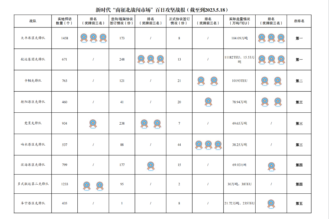 活動(dòng)開(kāi)展以來(lái),累計(jì)拜訪客戶數(shù)量9907家,簽訂意向/框架協(xié)議數(shù)量1464份,簽訂正式協(xié)議173份,實(shí)際走量22000TEU、449.21萬(wàn)噸。
