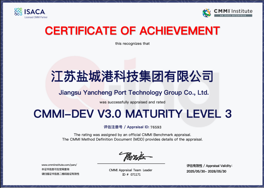 CMMI認證是國際公認的衡量企業軟件開發過程成熟度與項目管理水平的權威標準。科技集團憑借在項目管理、質量控制和過程優化等方面創新突破,成果獲得認證,為公司服務質量進一步提升和突破提供了有力支撐。
