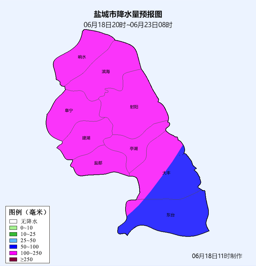 6月18日20時(shí)-23日08時(shí)全市降雨量預(yù)報(bào)圖