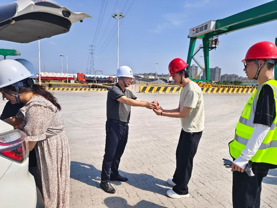 在物資慰問的基礎上,阜寧港區同步推出多項科學防暑措施,嚴格執行“抓兩頭歇中間”的錯時工作制,靈活調整露天作業時間,避開高溫時段,既保障了作業效率,又有效避免員工中暑風險。同時,增加現場灑水車作業頻次,通過定時灑水降溫,為作業區域營造相對清涼的環境。