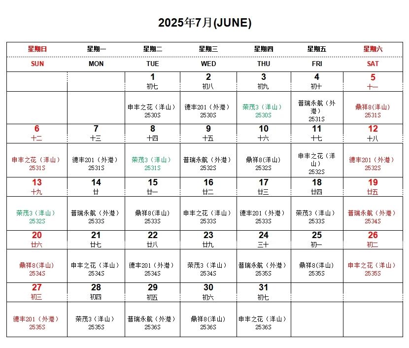 現(xiàn)將船期表更新內(nèi)容公布如下: