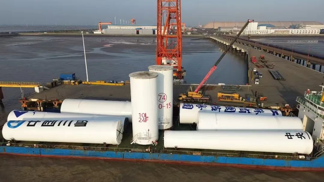 生產(chǎn)現(xiàn)場,作業(yè)團(tuán)隊嚴(yán)格按既定工藝執(zhí)行,分兩次靠泊完成8段風(fēng)電塔筒的精準(zhǔn)吊裝。技術(shù)人員核對貨物的重心、吊點、受力部件及工索具等實際狀況;應(yīng)急小組嚴(yán)陣以待,周密部署重大件作業(yè)安全措施;指揮人員目光如炬,實時監(jiān)控著每個細(xì)微的數(shù)據(jù)變化;操作人員手法嫻熟,讓重達(dá)數(shù)百噸的塔筒在空中劃出精準(zhǔn)的弧線,準(zhǔn)確落至船舶指定裝載位置;當(dāng)最后一顆螺栓緊固到位,本次雙套塔筒裝船任務(wù)也畫上了圓滿句號。