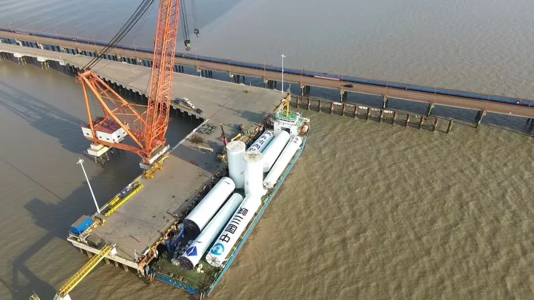 近日,隨著最后一件長31.6米、直徑6.6米、重146.3噸的風(fēng)電塔筒穩(wěn)穩(wěn)落在“云舟之星”輪甲板上,標(biāo)志著智慧港口公司散貨碼頭分公司創(chuàng)新的雙套風(fēng)電塔筒裝船工藝成功應(yīng)用實踐。