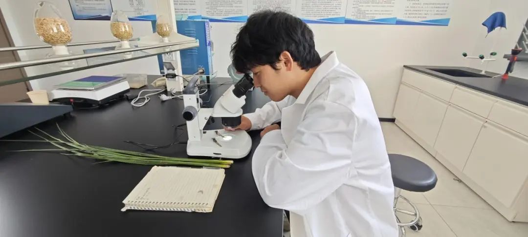 在水稻拔節(jié)孕穗的關鍵階段,金色農業(yè)的生產技術人員著手對制種稻進行花期剝查工作。技術員運用專業(yè)手法剝開水稻主莖葉片,借助解剖鏡、顯微鏡等精密工具,細致觀察父母本幼穗的形態(tài)及余葉動態(tài),精準預測花期差距。這一技術環(huán)節(jié)已被納入制種全流程管控體系,使得看似簡單的操作成為判斷父母本花期是否相遇、確保授粉成功的關鍵“黃金標準”。