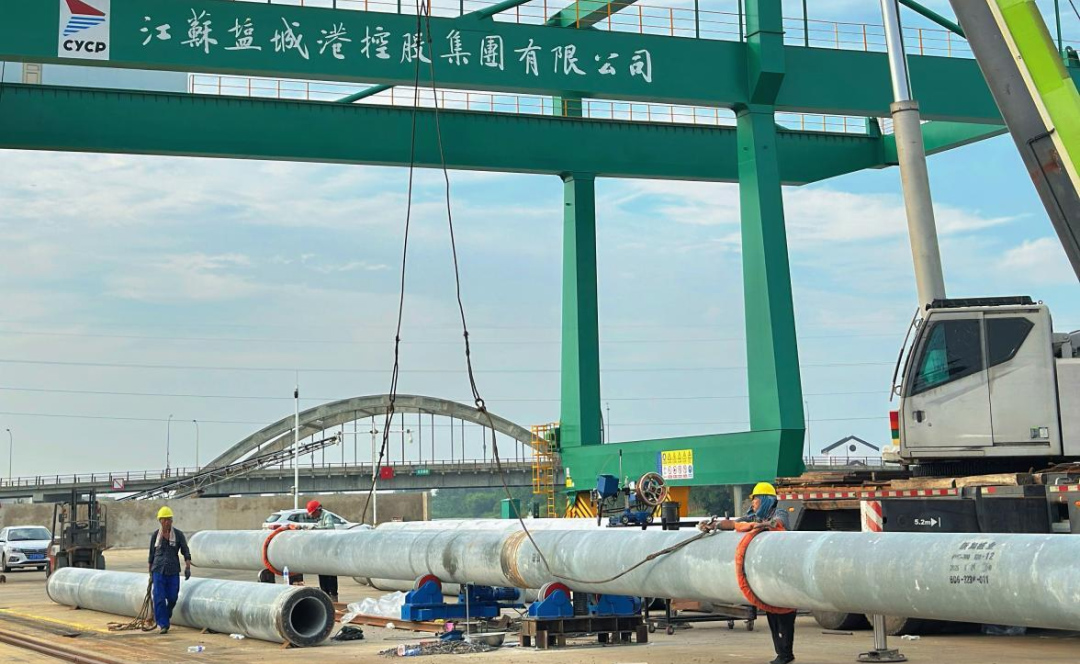 面對這一關鍵運輸任務,建湖港以 “優質服務 + 高效作業” 雙輪驅動:提前對接貨主與運輸船舶,制定24小時輪班作業方案;安排專業技術人員全程盯守管樁拼接環節,確保每一段管樁精準對接、安全穩固;作業現場實時協調裝卸設備與人員動線,最大限度減少銜接等待時間。憑借這份 “連軸轉” 的擔當與 “零差錯” 的專業,港區以全天候服務為項目順利推進筑牢了物流保障線。