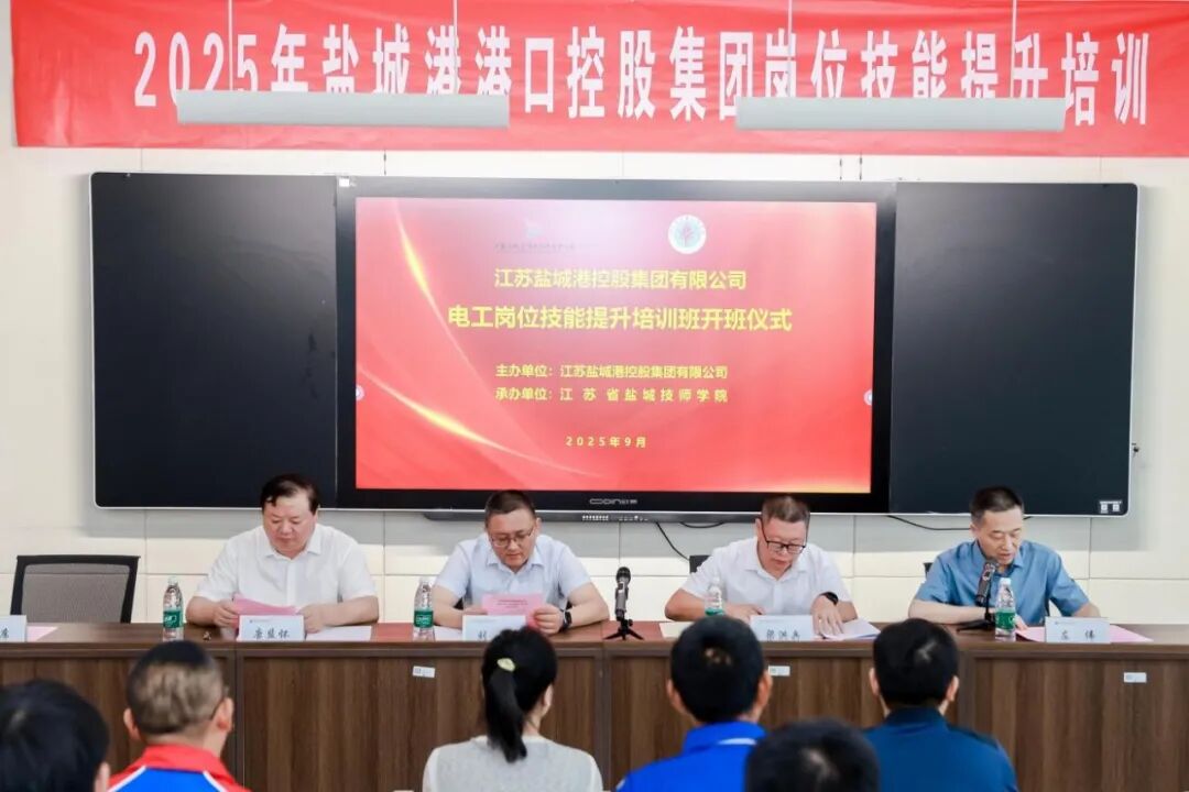 9月27日,鹽城港集團(tuán)電工取證班在鹽城技師學(xué)院正式開班,標(biāo)志著鹽城港集團(tuán)、鹽城技師學(xué)院與鹽城市人才集團(tuán)攜手開啟 “三方協(xié)同、精準(zhǔn)賦能” 人才培養(yǎng)新篇章,為港口人才隊(duì)伍建設(shè)注入新活力。鹽城技師學(xué)院唐監(jiān)懷校長(zhǎng),鹽城港集團(tuán)黨委委員、副總經(jīng)理梁洪兵,黃海金控黨委委員、副總經(jīng)理、鹽城市人才集團(tuán)董事長(zhǎng)劉偉及校方相關(guān)領(lǐng)導(dǎo)出席活動(dòng),共計(jì)30名參訓(xùn)學(xué)員參加開班儀式。