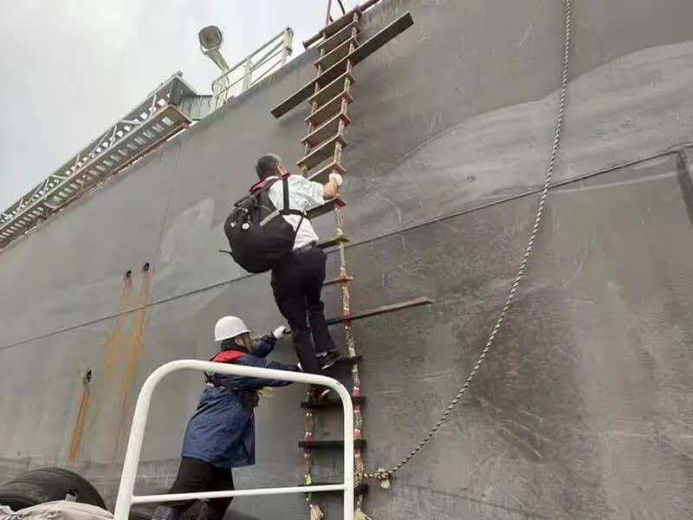 登離船環(huán)節(jié),堪稱引航員直面生死的第一關(guān)。鹽城黃海海域潮差大、涌浪密,即便不是極端天氣,濕滑的軟梯也會在浪濤中忽高忽低、劇烈晃蕩,引航員必須緊盯艇船間隙,精準捕捉零點幾秒的短暫平穩(wěn)期奮力攀爬,稍有疏忽就會失足墜海。遇上6級以上狂風、黃海突發(fā)氣旋時,軟梯晃動幅度成倍放大,再加上軟梯磨損老化、艇船靠泊錯位等突發(fā)狀況,極易引發(fā)墜海、船體擠壓碰撞的悲劇,這也是全體引航員公認的最高危操作環(huán)節(jié)。