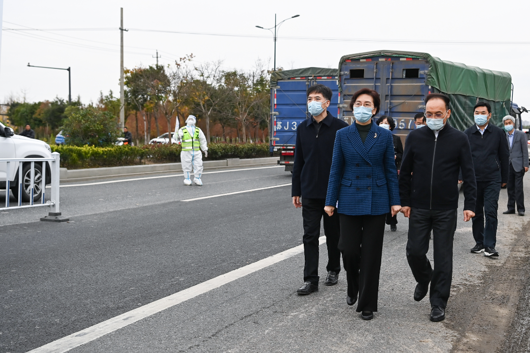 11月21日下午,市委書記徐纓以“四不兩直”方式檢查疫情防控工作。她強調,要深刻領悟“兩個確立”的決定性意義,完整、準確、全面貫徹落實黨中央決策部署,按照省疫情防控工作領導小組會議最新要求,深刻認識“三個堅定不移”是做好疫情防控工作的前提和基本原則,堅持問題導向,補齊短板弱項,不折不扣、科學精準把第九版防控方案和進一步優化防控工作的二十條措施落實到位,牢牢守住不發生規模性疫情的底線,最大程度保護人民生命安全和身體健康,最大限度減少疫情對經濟社會發展的影響。