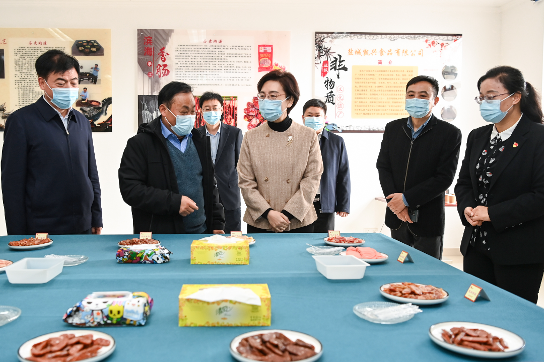 鄉(xiāng)村要振興,產(chǎn)業(yè)必興旺。江蘇震洲五醍漿酒業(yè)有限公司歷史悠久,底蘊(yùn)深厚。徐纓走進(jìn)車間一線,和企業(yè)負(fù)責(zé)人深入交流,勉勵傳承非遺文化,增強(qiáng)核心競爭力,推介提升品牌形象,不斷做大做強(qiáng)做優(yōu)。在濱??h中央廚房凈菜配送中心,徐纓認(rèn)真察看食材來源、菜品加工等情況,叮囑要提升聯(lián)農(nóng)帶農(nóng)本領(lǐng),嚴(yán)格全流程精細(xì)管理,強(qiáng)化食品安全管控,提升學(xué)生就餐滿意度,真正把民心工程做細(xì)做實(shí)做好。凱興食品有限公司集肉制品研發(fā)、生產(chǎn)、銷售于一體,產(chǎn)品深受市場歡迎。徐纓要求發(fā)揮好鹽城農(nóng)業(yè)強(qiáng)的優(yōu)勢,強(qiáng)化產(chǎn)業(yè)鏈協(xié)同聯(lián)動,實(shí)現(xiàn)又好又快發(fā)展。