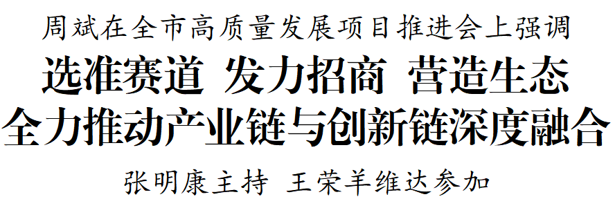 周斌在全市高質量發展項目推進會上強調:選準賽道 發力招商 營造生態 全力推動產業鏈與創新鏈深度融合