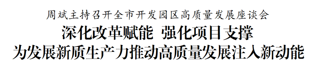 座談會上,市有關部門、相關開發園區負責同志,聚焦進一步培育發展新質生產力、加強開發園區體制機制創新等先后發言,剖析存在問題,提出下一步工作打算和建議。周斌認真聽取發言,詳細了解情況,不時同大家深入交流,群策群力尋找推動我市開發園區高質量發展的現實路徑和改革方向。