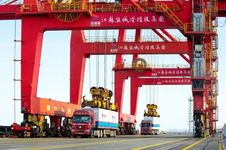 元旦期間,阜寧港區碼頭熱火朝天,累計作業19艘次,完成散雜貨吞吐量1.57萬噸,奮力打響了2023年生產經營開門紅第一戰。與此同時,阜寧港區東港作業區新增集裝箱堆場也在元月1日當天正式啟用。