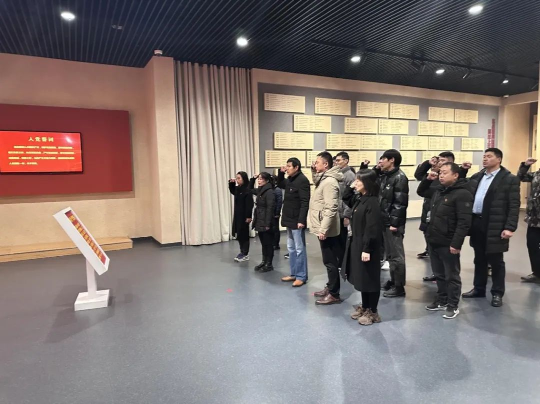 “我志愿加入中國(guó)共產(chǎn)黨,擁護(hù)黨的綱領(lǐng),遵守黨的章程……”全體黨員干部高舉右拳,重溫入黨誓詞,洪亮而堅(jiān)定的宣誓聲,在館內(nèi)久久回蕩。