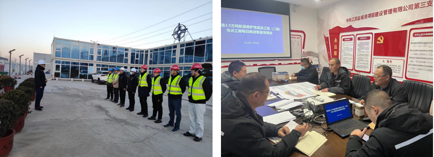 作為集團(tuán)成立以來的第一個臨時黨支部,中共江蘇鹽城港射陽港3.5萬噸航道工程臨時支部委員會深入學(xué)習(xí)貫徹黨的二十大精神,傳承弘揚(yáng)不怕困難、不畏艱險,勇于斗爭、敢于勝利的鐵軍精神,發(fā)揮基層黨組織和共產(chǎn)黨員戰(zhàn)斗堡壘和先鋒模范作用,全面推行“黨建+項(xiàng)目管理”“黨建+安全生產(chǎn)”工作,積極開展工程建設(shè)管理政策、施工工藝措施等方面研究,充分吸收合理化建議,協(xié)同配合、加強(qiáng)調(diào)度,及時會商解決遇到的困難和問題,形成推進(jìn)項(xiàng)目驗(yàn)收的強(qiáng)大工作合力。
