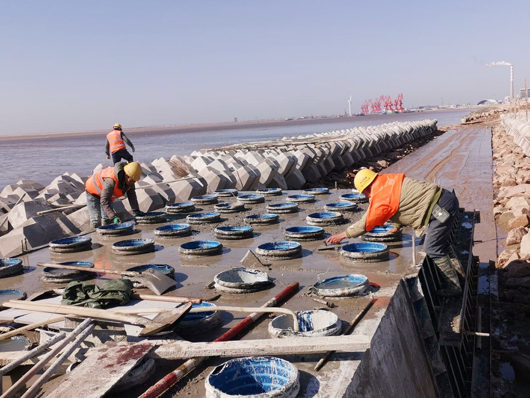 今年以來,集團工程部積極踐行鹽城港集團創新發展理念,根據集團黨委統一部署要求,圍繞沿海港口設施建設新技術推廣應用,重點針對軟土地基處理、海洋工程施工、鹽堿灘地綠化、碼頭建(構)筑物飾面工程等領域,抓好工程技術創新團隊建設工作。目前,已牽頭組織集團工程部、建設集團、中交一航院項目組等部門和單位相關技術人員,提出了“鹽城港集團黃海建案”創新團隊組建方案,并著手開展軟土地基處理“強夯排水法”和“高真空擊密法”比較研究、“大體積混凝土壩體乘潮施工技術”等課題開發,其中 “大體積混凝土壩體乘潮施工技術”在“射陽港5萬噸航道北導堤先導試驗段”項目中成功應用。